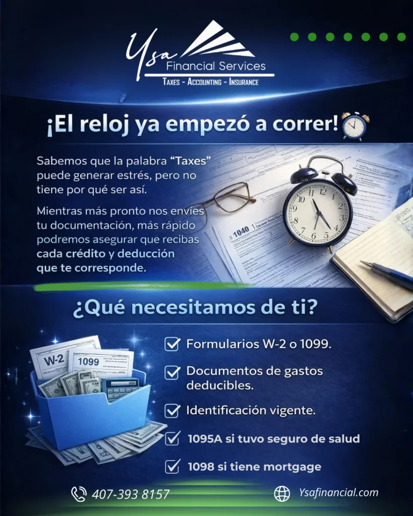 En Ysa Financial Services, entendemos que los impuestos pueden ser complicados y abrumadores. Por eso, te ofrecemos un servicio integral de impuestos, desde la preparación de declaraciones hasta la planificación fiscal estratégica. Nuestro equipo de expertos está al día con las últimas leyes y regulaciones para asegurar que pagues lo justo y recibas todos los beneficios a los que tienes derecho. Ya seas persona física o empresa, te ayudamos a cumplir con tus obligaciones fiscales de manera eficiente y sin estrés.